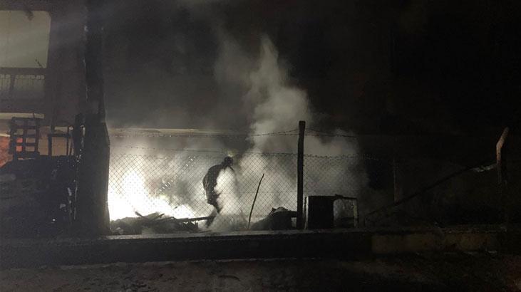 Ekiplerin yangına müdahalesi sırasında bir itfaiye erinin Türk bayrağını alandan çıkarması da görüntülendi.