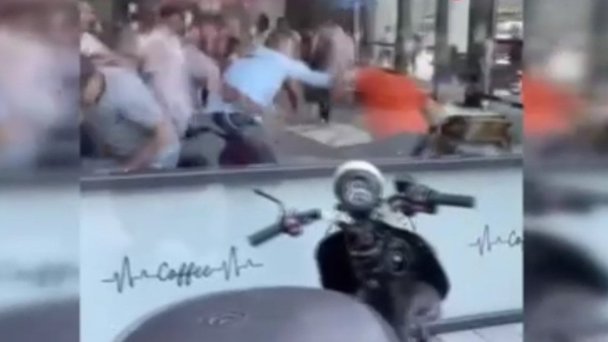 İstanbul Esenyurt’ta bir kafede sopa ve sandalyelerle birbirine giren iki grup güçlükle yatıştırıldı. Kavga nedeniyle ortalık savaş alanına dönerken o anlar cep telefonu ile görüntülendi.