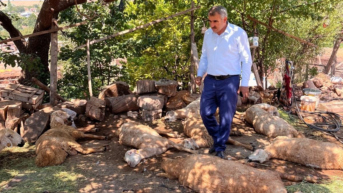 Kırşehir’de Ali Akkuş’a ait mandırada 60 küçükbaş telef oldu. Hayvanların patates tarlasından gelen sudan içip zehirlendiği iddia edildi.