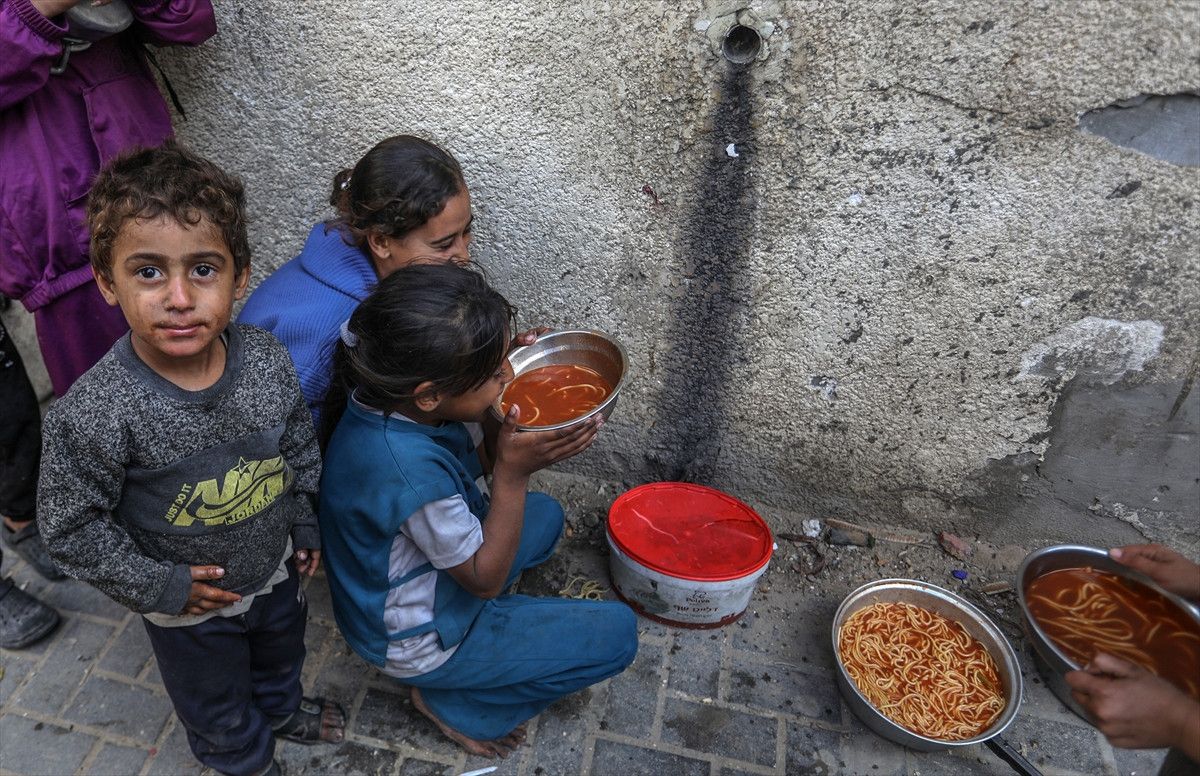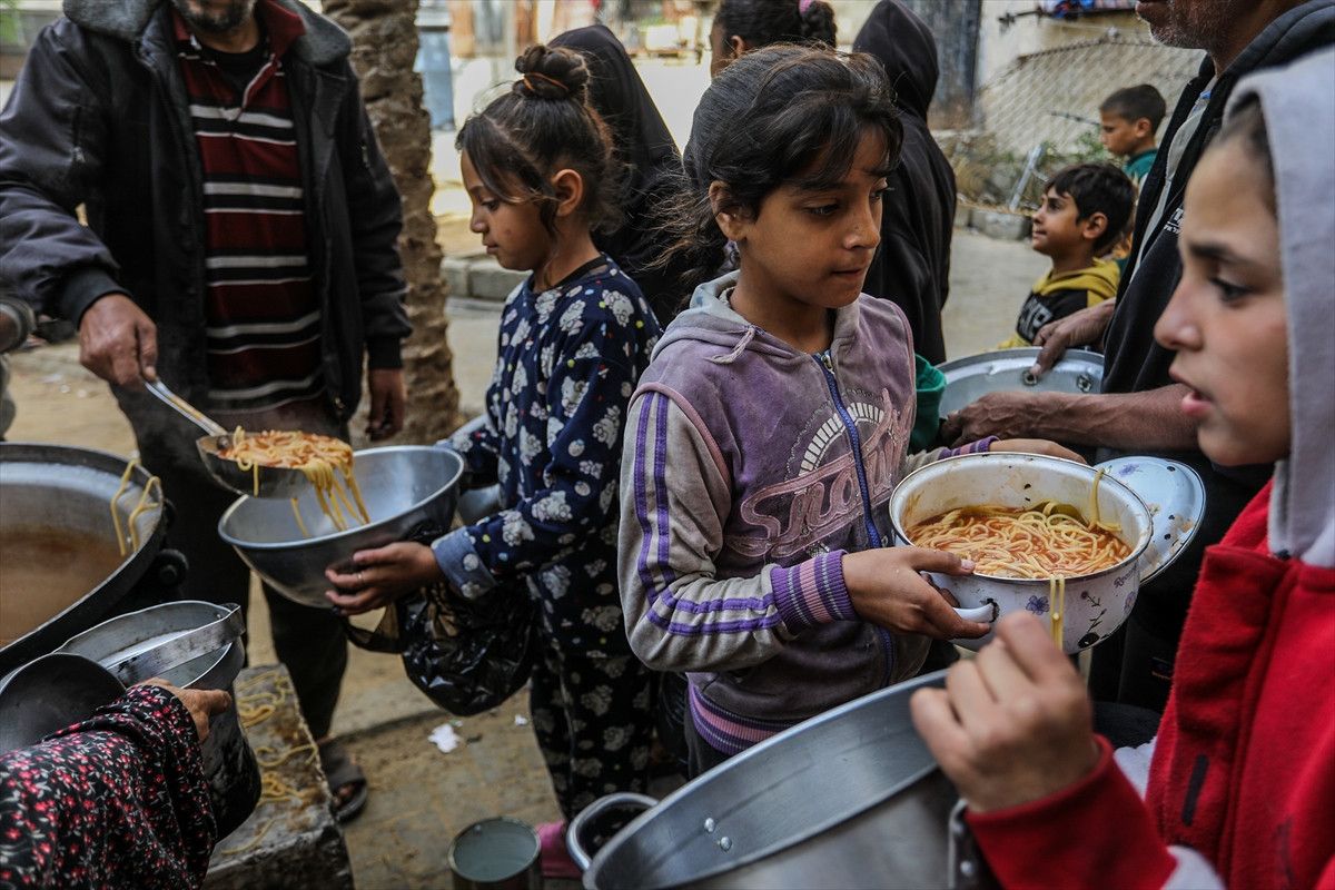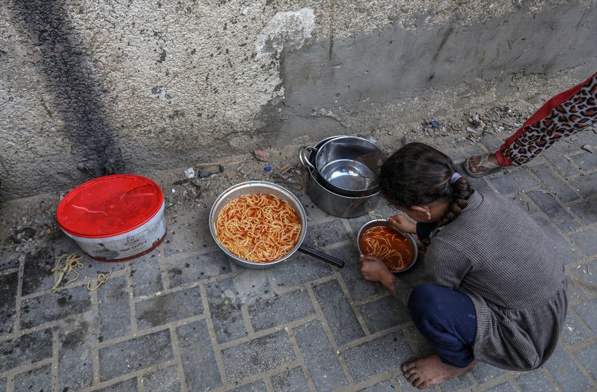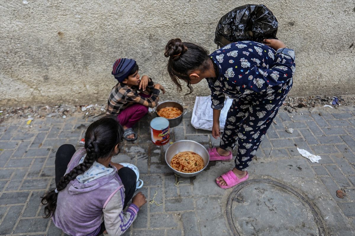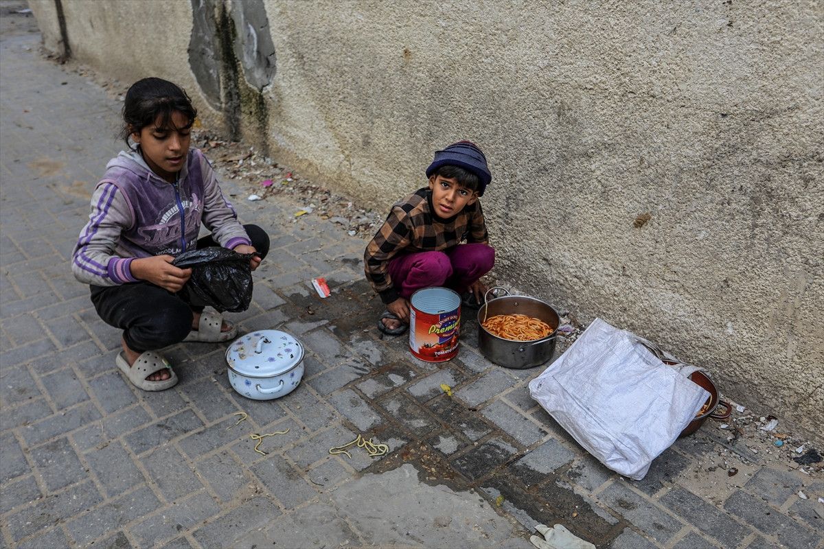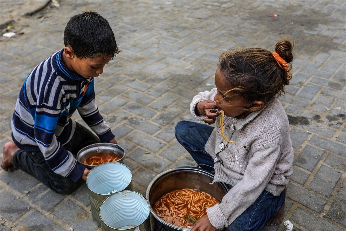 Gazze Şeridi’nin güneyinde bulunan Han Yunus kentindeki el-Mevasi bölgesinde, bir hayır kurumu tarafından İsrail saldırıları sonucu yerinden edilmiş Filistinlilere sıcak yemek dağıtımı yapıldı.