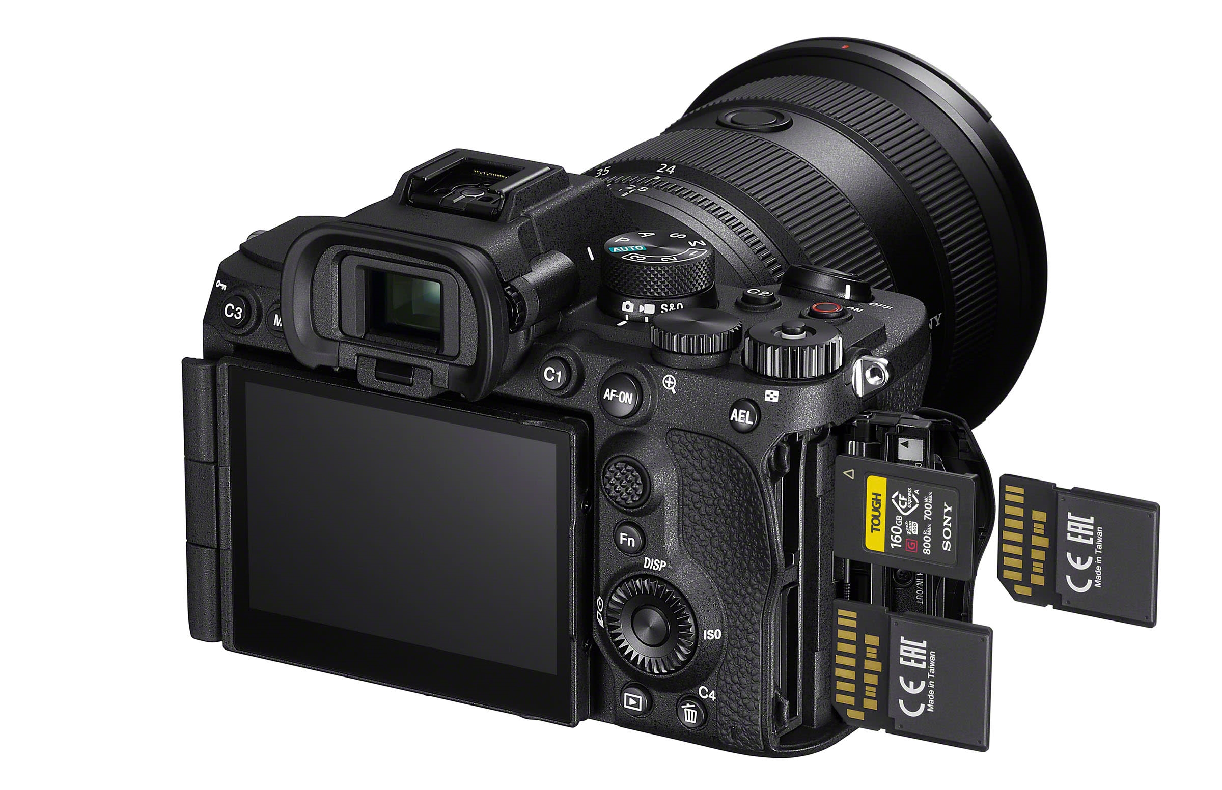 2.1 milyon pikselli arka ekran hem yana açılır yapıyı hem de yukarı aşağı eğilmeyi destekliyor. Elektronik vizör ise A7 IV ile aynı, 3.69 milyon piksele sahip OLED panel kullanıyor. NP-FZ100 batarya ile 750 kareye kadar çekim yapılabiliyor ve bu sınıfta en iyi değerlerden biri. Hafıza kartı tarafında A1 II’deki çift CFexpress yapısı yerine bir CFexpress Type A/SD hibrit yuvası ve bir SD UHS-II yuvası bulunuyor. Ek olarak 3.5 mm mikrofon ve kulaklık girişleri, tam boy HDMI, Wi-Fi 6 ve iki adet USB-C portu mevcut.