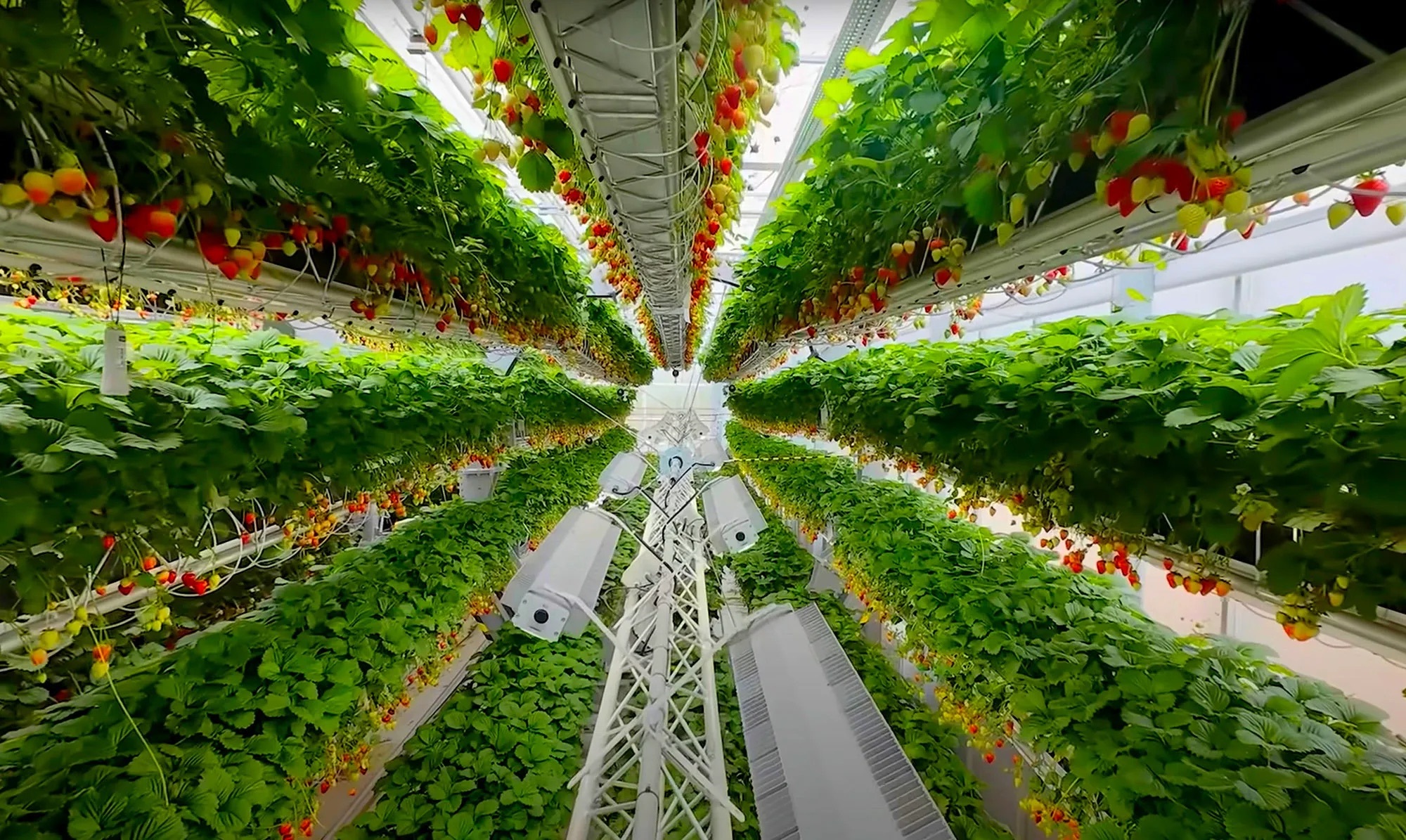 Kapalı bir sera ortamında dikey tarım yaparken, dönen silindirler (24 metre x 5,5 metre) içindeki çileklerin bedava güneş ışığından eşit şekilde yararlanması sağlanmış. Böylece aynı sera alanında 2,5 kat fazla yetiştirme alanı elde edilmiş. Güneş ışığının olmadığı karanlık kış günlerinde ise eksik kalan gün ışığı özel LED ışıklarla tamamlanmış.