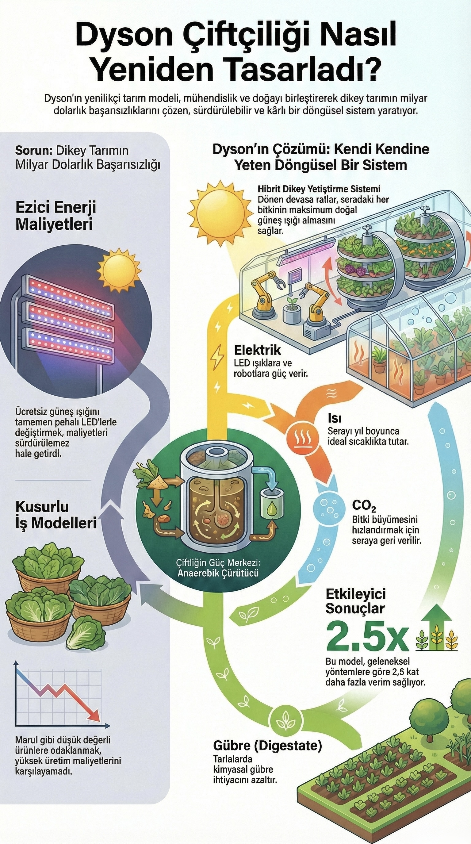 LED ışıklar, özel ısıtıcılar ve besin solüsyonlarıyla büyüyen dikey tarım tesisleri; enerji krizleriyle çok büyük darbeler aldı. Dyson’ın tarım birimi ise sektörde yaşanan tüm bu sorunları farklı bir bakış açısıyla çözdü.