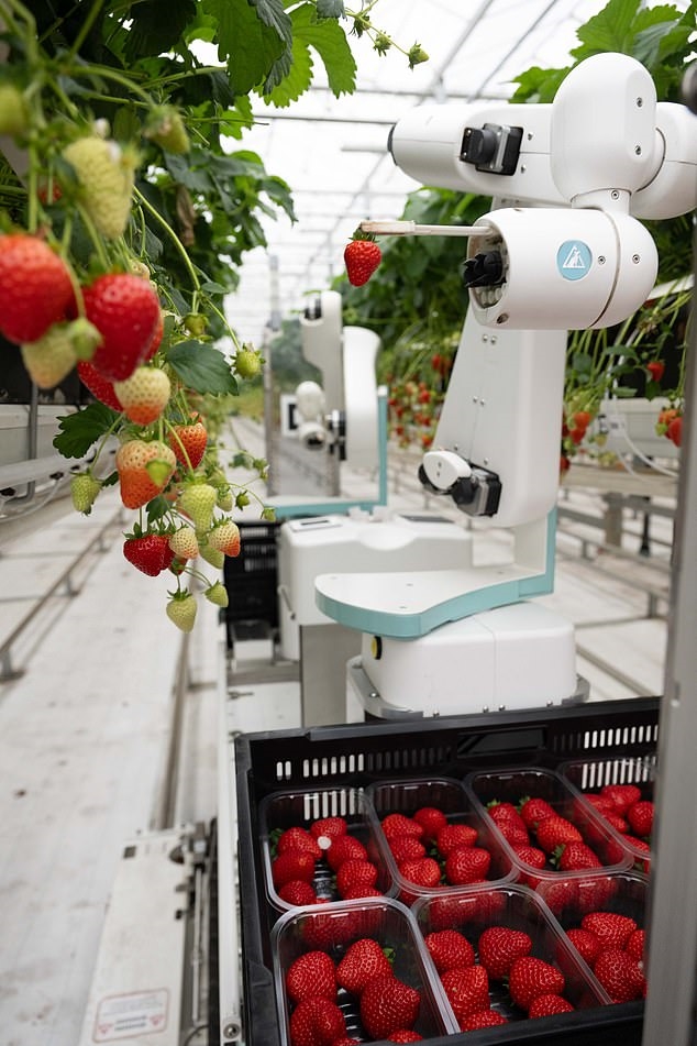 Hasat esnasında ise robotik kollar kullanılarak insan ihtiyacı azaltılmış. Bu kollar üzerlerindeki kameralarla her bir çileği en olgunlaştığı anda tespit edip, iz bırakmadan kibarca kopartıyor. Diğer otomatik sistemler sayesinde, dönüm başına 35 kişinin çalıştığı seralar yerine ayda 200 bin çilek üretimi sadece 3-4 kişiye düşürülmüş. Ayrıca küflerin gelişimini azaltan UV ışık saçan gezici robotlar ve gerekli yerlere zararlı böcekleri yok eden yararlı böcekleri salan robotlar geliştirilmiş. Yararlı böcekler sayesinde serada %90 oranında daha az pestisit (böcek ilacı) kullanılmış.