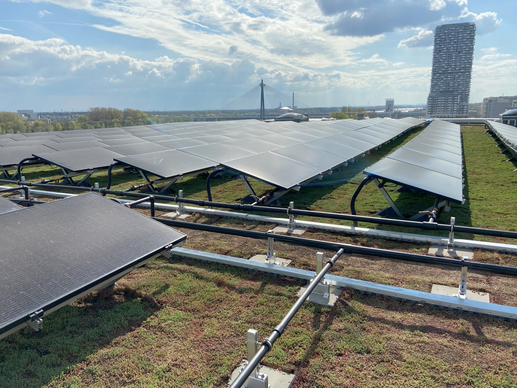 Tesisin enerji bağımsızlığının temelini birden fazla yenilenebilir enerji teknolojisinin entegre edilmesi oluşturuyor. Çatıda bulunan 1.134 adet PVT güneş paneli, standart PV panellerden farklı olarak yalnızca elektrik üretmekle kalmıyor, aynı zamanda güneşin ısısını toplayarak binanın ısıtılmasında kullanılacak termal enerjiyi de sağlıyor. Bu kurulum, Avrupa’nın en büyük PVT çatı sistemi olma özelliğini taşıyor ve yılda 3 GWh elektrik ile 1.4 GWh termal enerji üretiyor.